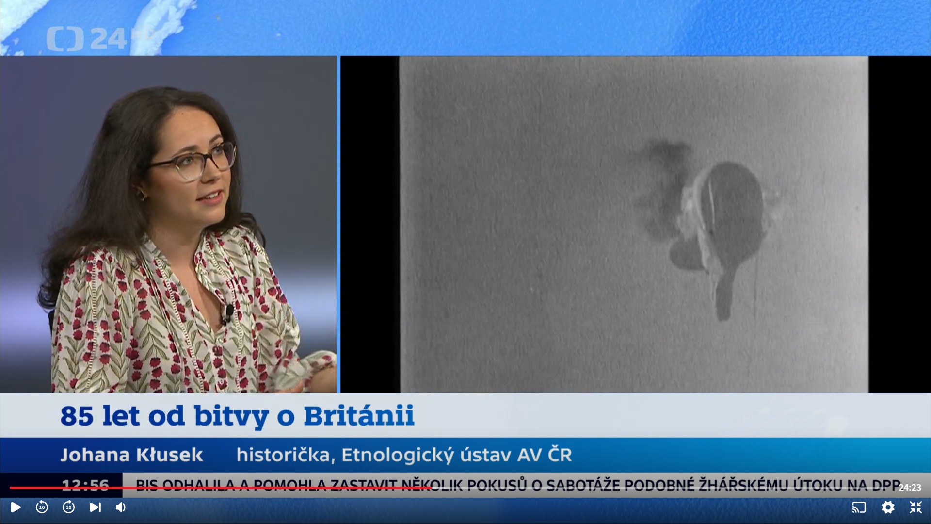 Johana Kłusek z oddělení paměťových studií vystoupila v České televizi v pořadu Stuido 24 k tématu 85 let bitvy o Británii.
