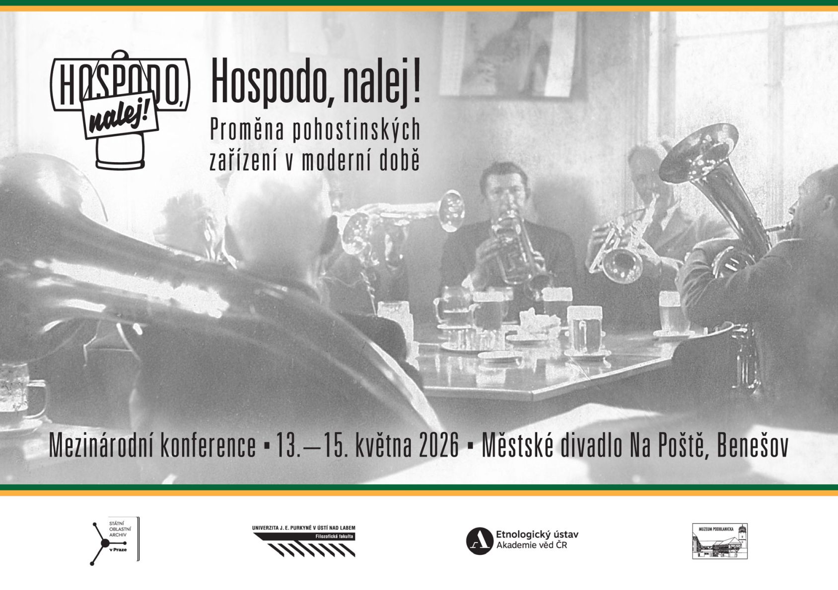 Státní oblastní archiv v Praze, Filozofická fakulta Univerzity Jana Evangelisty Purkyně v Ústí nad Labem, Etnologický ústav Akademie věd České republiky, v. v. i., a Muzeum Podblanicka, p. o., si Vás dovolují vyzvat k zasílání přihlášek příspěvků na mezinárodní a mezioborovou konferenci Hospodo, nalej! Proměna pohostinských zařízení v moderní době. Konference se uskuteční ve dnech 13.–15. května 2026 v sále Městského divadla Na Poště v Benešově. Termín zaslání návrhů Vašich příspěvků je do 15. února 2026.