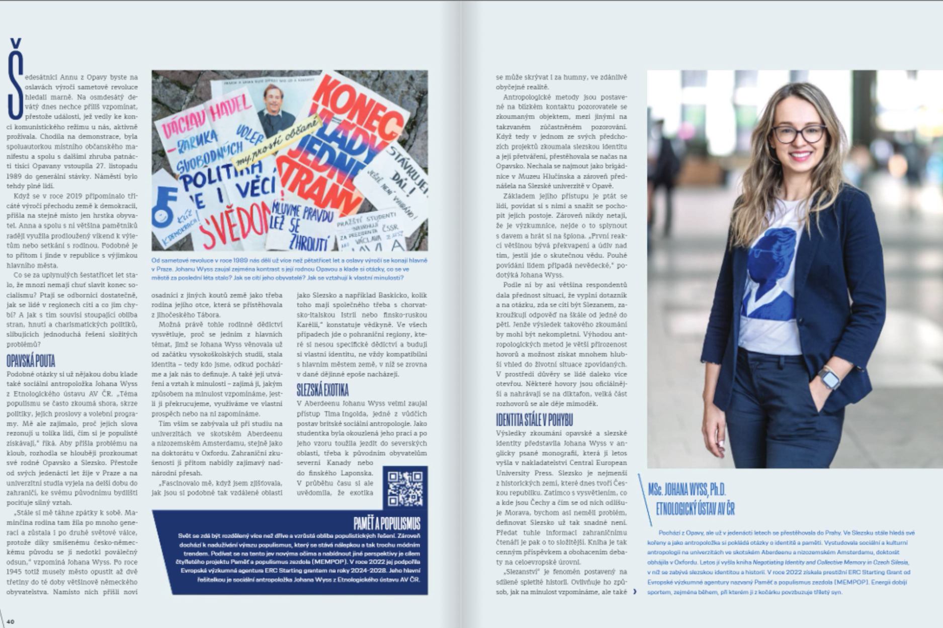 Článek o Johaně Wyss, jejím výzkumu a projektu MEMPOP vyšel v nejnovějším čísle časopisu A-Magazín, který vydává Akademie věd ČR.