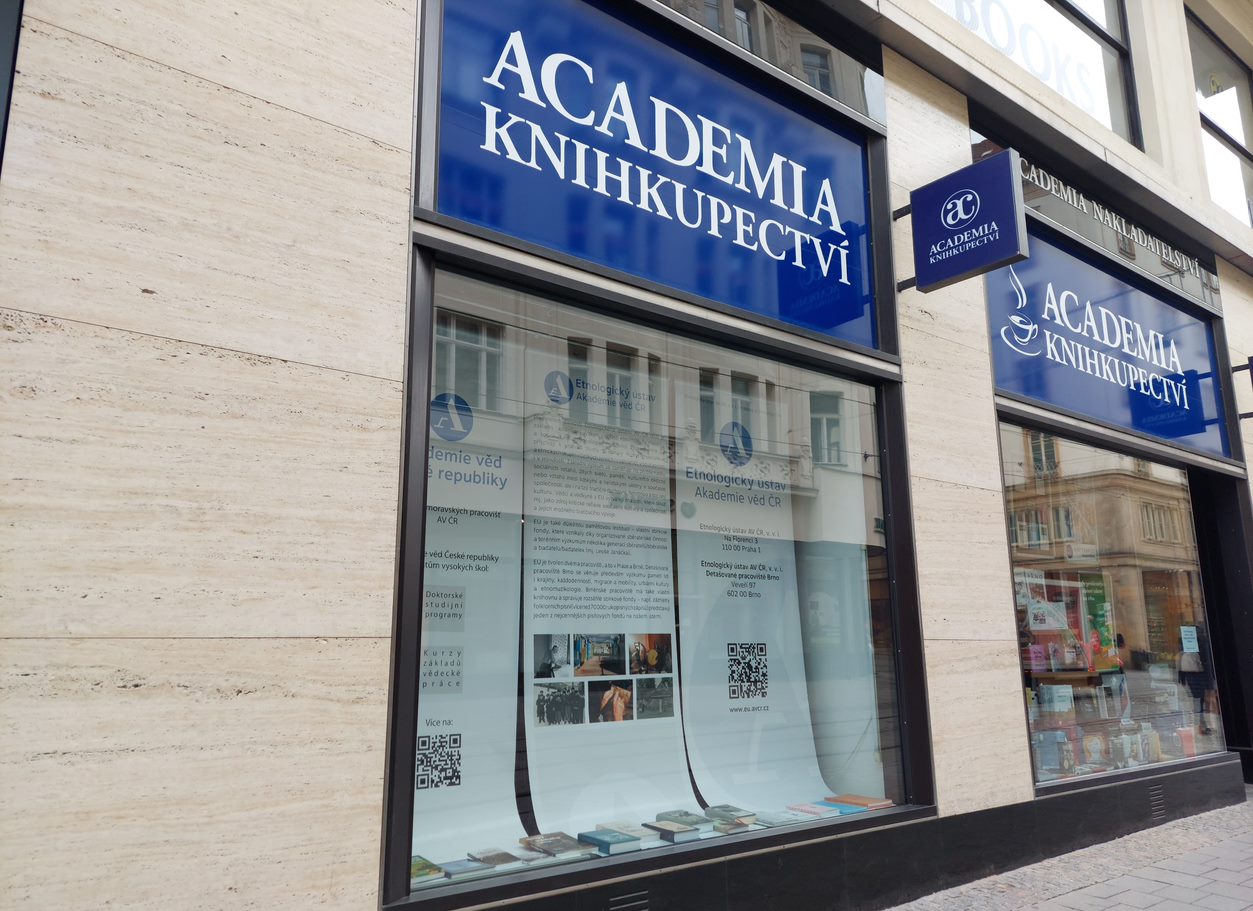 Etnologický ústav AV ČR se prezentuje v měsících březnu a dubnu ve výloze knihkupectví Academia na náměstí Svobody v Brně. Prezentaci publikační činnosti doplní i dvě přednášky pracovníků a pracovnic EÚ v Literární kavárně v knihkupectví Academia pro širokou veřejnost. První proběhne 15. 3. 2023 v 17. 00 na téma Kramářské písně v ústní tradici Moravy a Slezska, druhá pak 19. 4. 2023 v 17.00 na téma Politický vtip v proměnách doby.