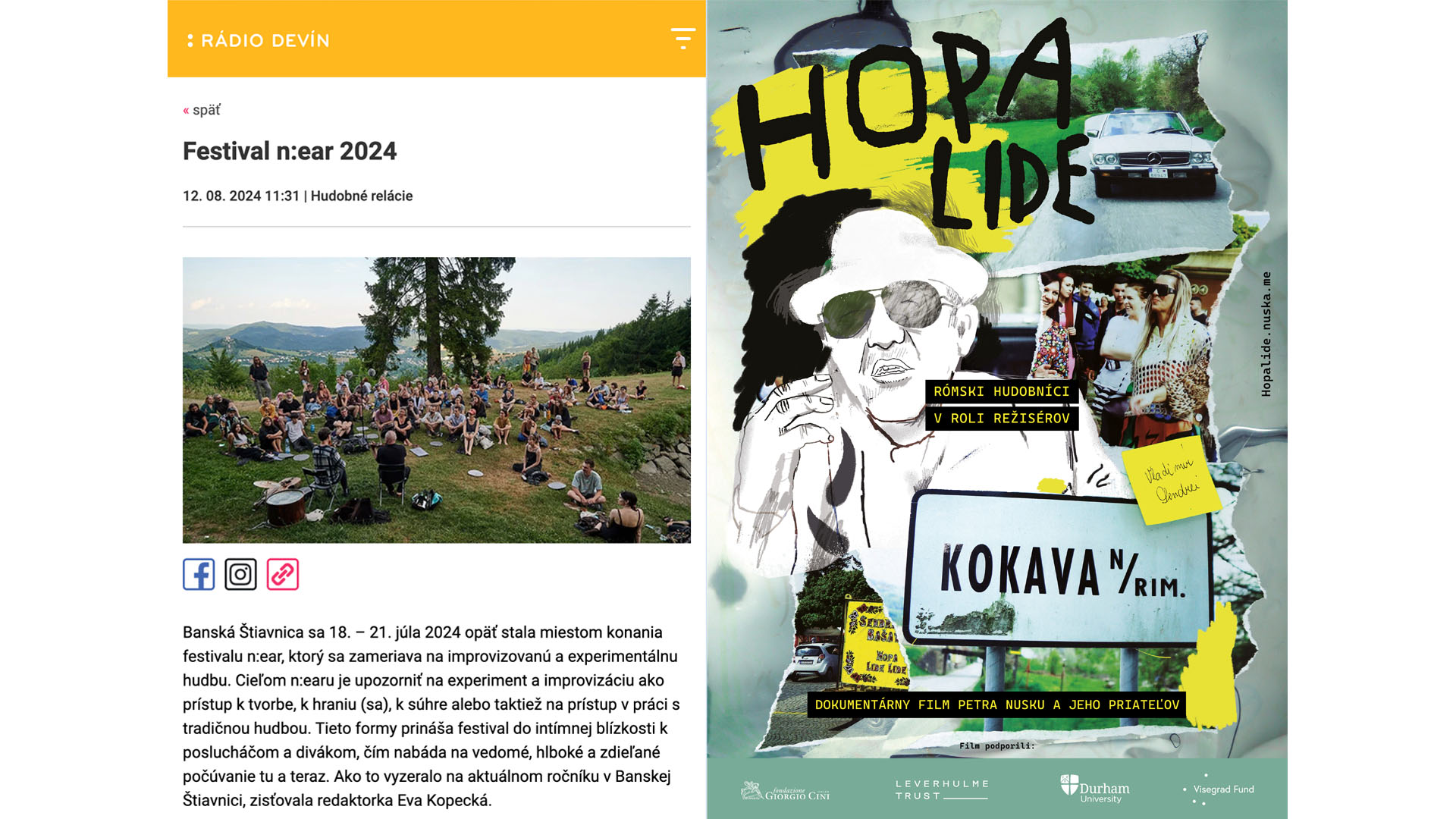 The n:ear festival of improvised and experimental music in Banská Štiavnica screened Hopa lide – an ethnographic film about Romani musicians from Slovakia, directed by our employee Petr Nuska. On that occasion, he was interviewed by the reporter of Slovak Radio. In the festival report, you will learn about how the film was made, what it is like when an ethnomusicologist makes a film, and what specifics (and pitfalls) of Romani representation exist in contemporary Czech and Slovak documentary film. The interview (in Czech and Slovak) was prepared for Radio Devín by Eva Kopecká.