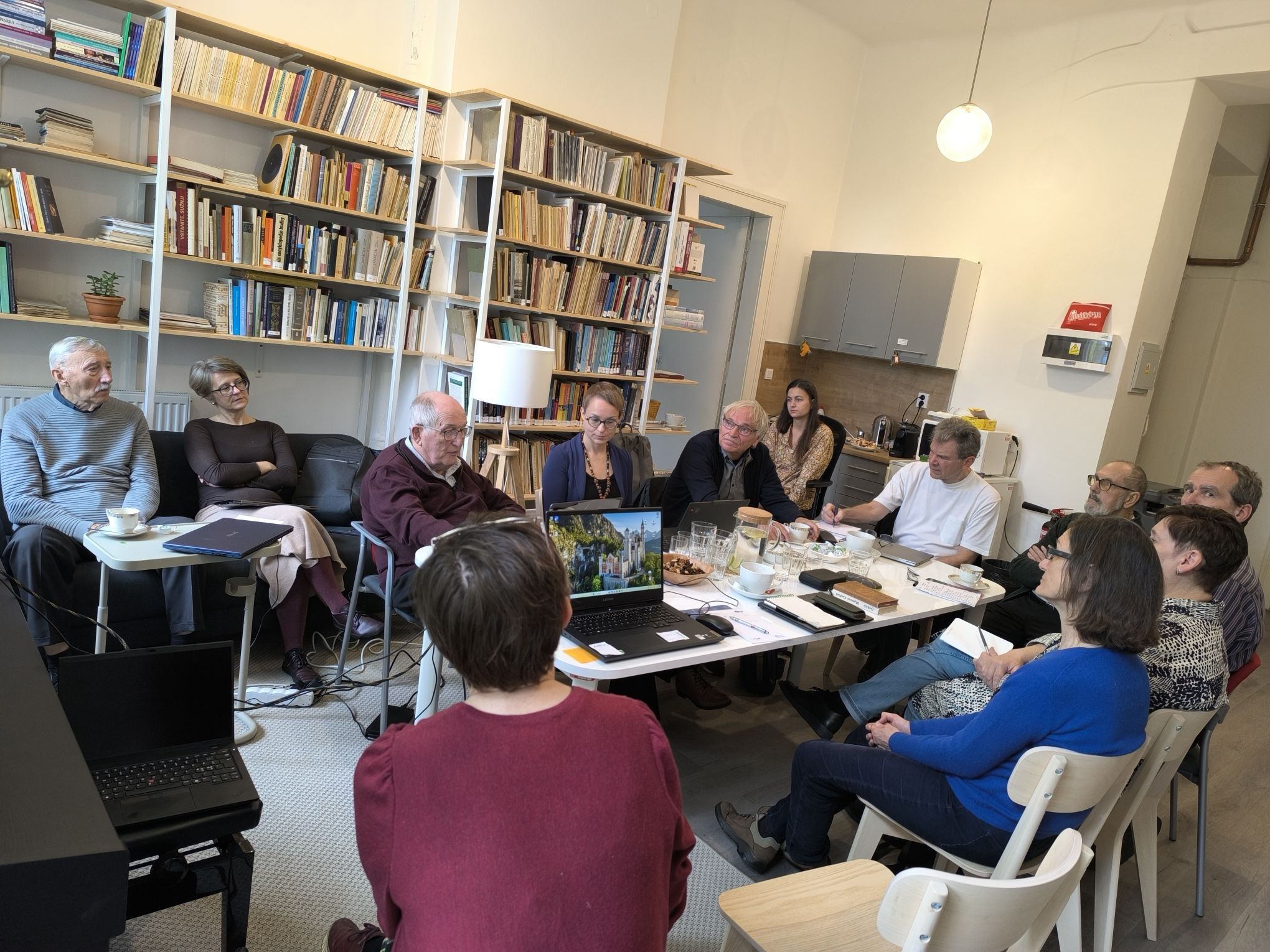 Researchers from academic institutions in several European countries (Norway, Sweden, Great Britain, Germany, Hungary, Slovenia, Slovakia, and the Czech Republic) met at the workplace of the EU AV ČR at Pushkin Square as part of their regular meetings. The Prague meeting was organized for the umpteenth time by Daniela Stavělová. The project led by Prof. emeritus Egil Bakka (NTNU Norway) focuses on the study and analysis of European couple dances, whose roots extend back to the 16th-18th centuries, and which can be considered the forerunners of the waltz and polka that dominated the dance landscape in the 19th century. The aim is to capture the development of this element/technique over the centuries up to the present day, based on sources from across Europe. An application for funding from the European program ECHOES Cascading Grants Call, which supports smaller interdisciplinary projects that contribute data to the Heritage Cloud portal, is currently being processed. This program offers a platform for publishing films, texts, and image documentation in close connection, as well as advanced technology for systematizing and analysing this type of material.